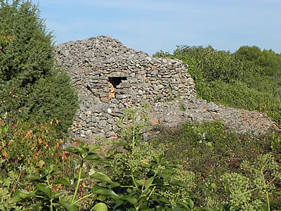 All up and down the Croatian coast similar stone shelters can be seen. Over by Šibenik and Zadar, they have square versions as well as round ones, and they’re known as bunja. In Istria, they’re known as kazun, and on Krk, they’re called komarda. This type of stone field shelter is, in fact, very widespread all the way around the Mediterranean, and as far north as Scotland and Ireland. Stone buildings really last!