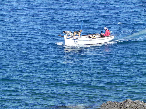 An alternative way to round the headland is by boat – does this count as walking the dogs, though? They seem to be having fun!