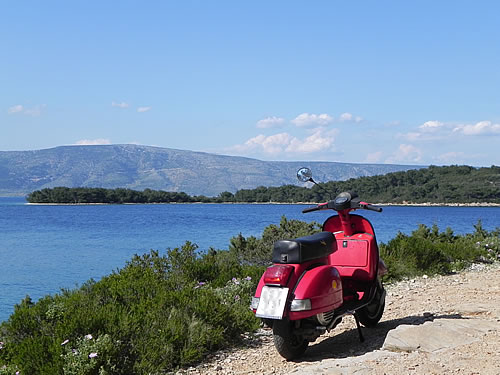 Every so often, the trees provide a natural frame for views of rocky shoreline and the eastern end of Hvar.