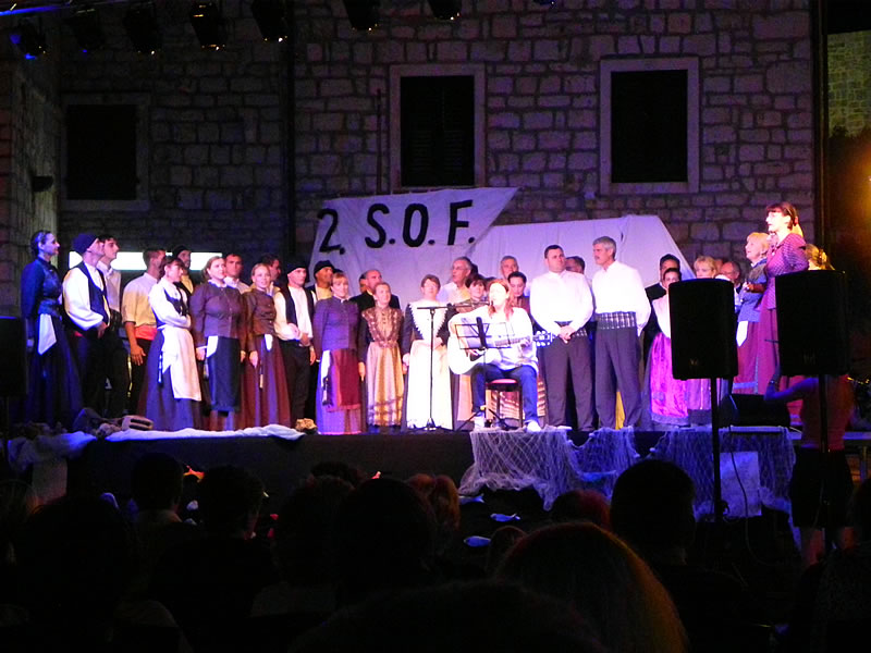 Always on the lookout for some authentic island happening, we were delighted to read about a folklore evening this Saturday in Jelsa. Thank you to the excellent Total Hvar Blog. So on with the long trousers and insect repellent and off to Jelsa.