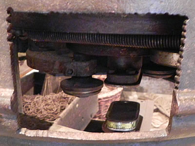 Back at the museum, there’s a massive piece of ironmongery that turns out to be a machine for closing the lids on sardine tins. It uses pedal power, and seals the rim all the way round – it could do 300-500 tins in an hour apparently, which is pretty impressive!