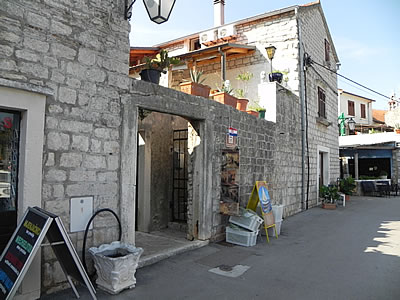 In 1894, a French company built a sardine processing factory in Vrboska. It was replaced a few years later by the one you can see on the north shore today. The building and the chimney still stand, although the roof has now partly fallen in. Rumour has it that the property has been bought and plans are afoot to renovate it and start a new business there. Personally, I’d love to see the old boat-building yard next door restored as well. Perhaps a display of wooden boat-building and a side-line of handcrafted wooden objects?