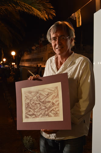I hope Dražen is right about his work. I fell in love with his study of sardines – yes, me, who has often said I don’t like anything that might conceiveably be called “still life with fish”! But somehow, this is different. It’s a typically Dalmatian motif, and has a flow and movement to it that I really enjoy. Plus, it’s painted in local wine. The note beneath states that this is an original Vinorel of Plavac Hvar PZ Svirče, Hvar 2009. And it’s going on my wall as soon as I can get it a frame with protective UV glass. 🙂