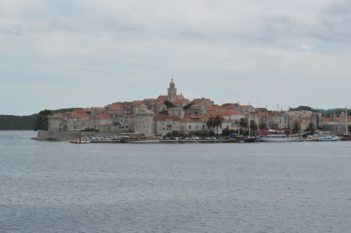 Those mountains to our left were going to grow into a big stone wall as we continued south! For the moment, though, we swung to our right, and headed towards our next port of call, the rather beautiful town of Korčula.