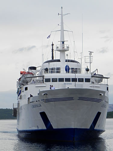 Our ship was the Liburnija, rather venerable at 48 years old, she was Jadrolinija’s first car ferry of any size, specially commissioned from a builder in the Netherlands. In the early days of Jadrolinija (set up in 1947) their fleet was all commissioned, not bought second hand, as they have done more recently. The Liburnija was built in 1965, and still retains the style of an older passenger ship, without having the size, space and extra power of the more modern equivalent. The benefit is, of course, that she can still dock at the smaller ports on the route.