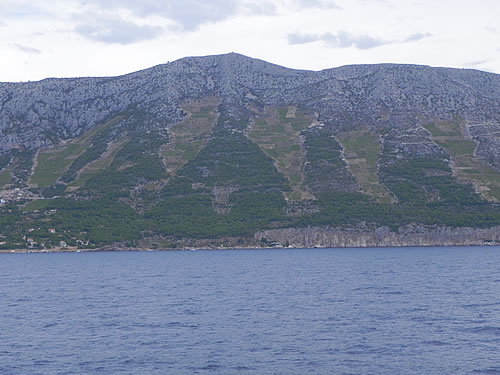 Outside, Korčula grew closer on the right, and Pelješac arrived close in to our left, quite low and dark. We were entering the fairly narrow channel that separates the island of Korčula from the mainland, in the form of the Pelješac peninsula.