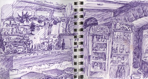 And lastly, here’s my sketch of the interior of Pizzeria Marko, done while waiting for our pizza to cook…