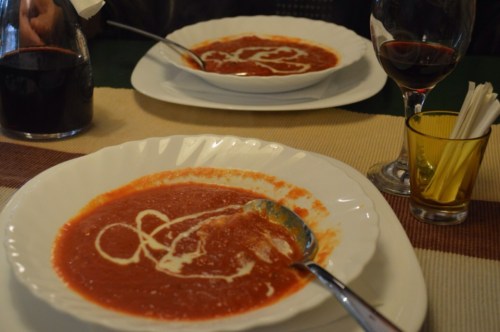 Marko’s pizzas are reputed to be the best on Hvar, and they’re certainly a strong contender for the title. We began with two bowls of the most wonderful freshly-made tomato soup I’ve ever tasted, a great starter on a rather damp, chilly day.