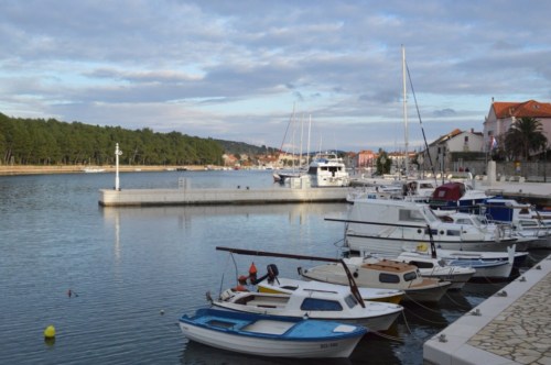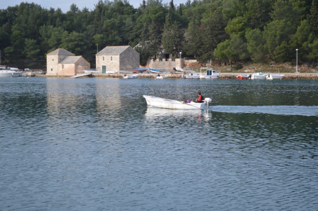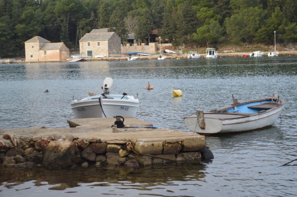 Out by the Stari Mlin, the old mill, is a rather older jetty, with view across the water to the church of Sv Jerolim and the Eremitaž restaurant.