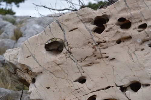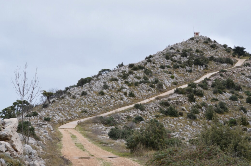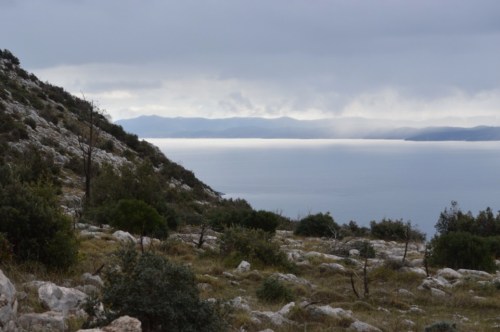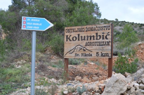 We walked up to Sv Nikola yesterday, that’s the island’s highest peak. I won’t try to pretend that we walked all the way up, in fact we drove most of the way. The road leads up from the end of the Selca tunnel, the turning nicely signposted. The larger, more noticeable sign is for Kolumbić Agroturizam which was closed in January, but is apparently excellent.