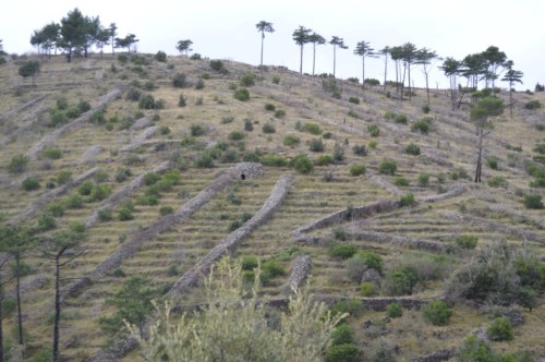 Amongst the derelict fields we see some recently worked vineyards. The newer plantings tend to be arranged in straight rows, while older growth vines stand out as knarled, twisted stems. At this time of year, everything is neatly pruned.