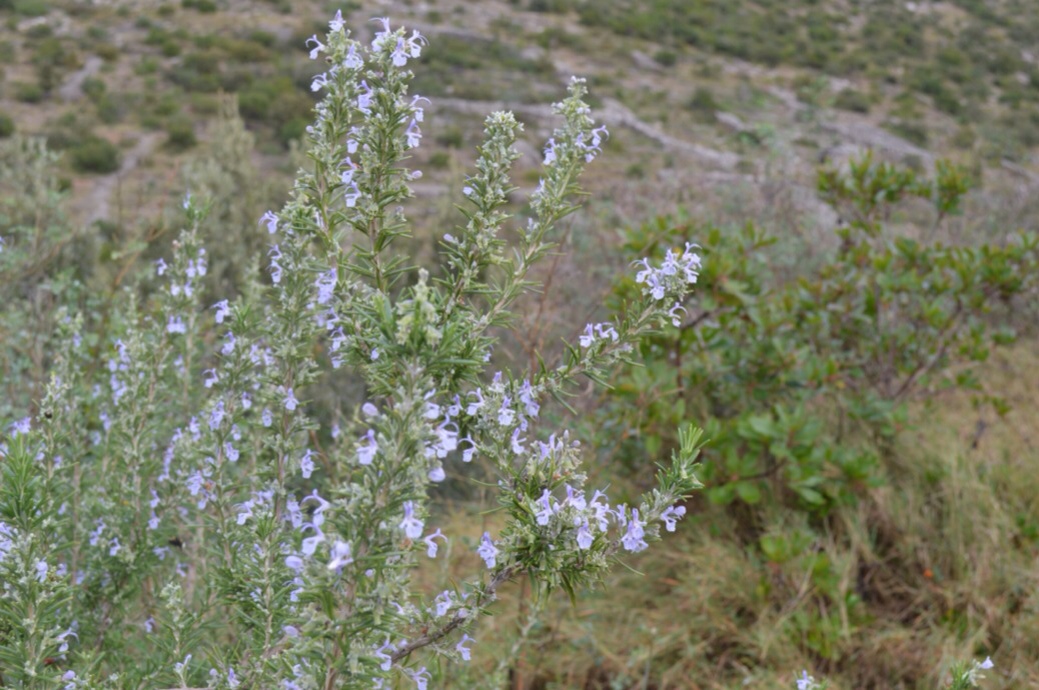 There’s rosemary in flower by the roadside, now growing wild, but perhaps remnants of cultivated rosemary from times gone by. Both rosemary and lavender essential oils were big business here.