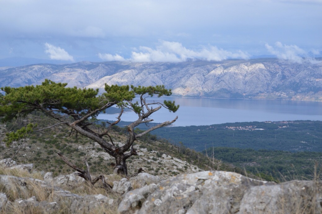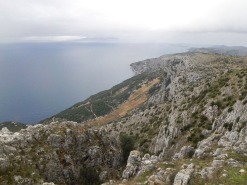 As we climb higher, we can see north to Bol on the neighbouring island of Brač. It’s very pretty as the sun catches it. The sea looks so calm today.