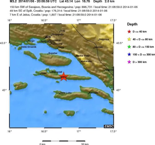 We were enjoying dinner last night with friends in Svirče when the earth moved and rumbled for the second time this week! A quick check online found a recent 3.2 with epicentre off the Pelješac peninsula. No, really, that can’t be what we felt. This was much closer, surely?