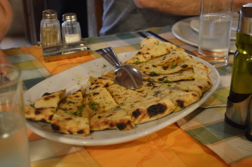 Our lunch started with a Kod None speciality – Pogača stuffed with onion and anchovies, and we also enjoyed a very tasty Black Risotto, made with cuttlefish ink. Pogača might be thought of as a doubled-over pizza, in a similar way to a calzone.