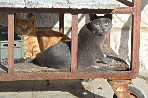 And finally, this rusty old cart in Jelsa made a handy snoozing place for this rather lovely pair of troublemakers. Now I wonder why the russet colour on a cat is called ginger, when he clearly should be called rusty?