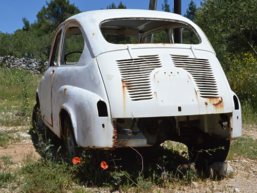 A rather different form of metal art – maybe titled “Rustbucket with Poppies”? This old car has been left in a field near Vrboska to rust away. Shame, as it doesn’t actually look in that bad condition. I’ve seen worse on the roads!
