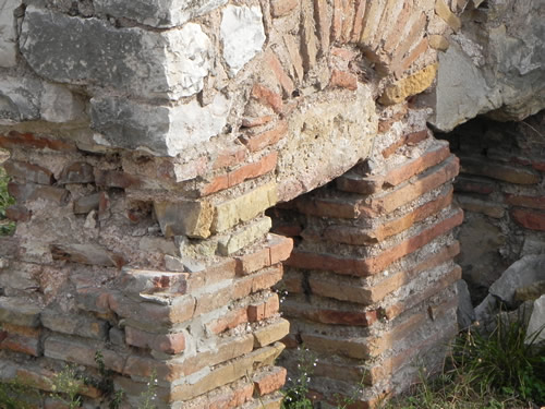 The oldest part of Salona still standing is a section of the city wall, and Porta Caesarea (Caesar’s Gate), which dates from the first Roman phase. This was the old entrance to the city and very impressive it is, with massive octagonal towers. There’s a walkway for pedestrians to each side of the main paved road for vehicles.