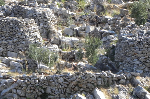 Most of the olive production in Croatia is on small plantations, many parcels less than a hectare in size. In Dalmatia, you can see why that is so, given the steep terrain and poor soil collected behind retaining dry-stone walls. So the types of olive grown here must be pretty heat resistant and drought tolerant. Further up the coast, in Istria, there are different varieties grown, ones that can better tolerate cold and strong winds.