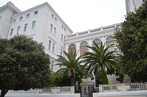 Next to the sea organ is the Greeting to the Sun. We spent some time trying to decipher it, but really there’s nothing much to see before sunset. A little further along is the Women’s Lyceum building – Zadar had a very enlightened attitude to further education for women. This building is from 1901, well before many other places/countries provided the same opportunities.