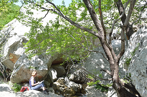 The canyon is very popular with rock-climbers, and there were groups of sinewy people striding purposefully up the path loaded with backpacks, ropes, boots and other climbing equipment. As they headed off uphill to their chosen parts of the canyon wall, we sat down to have our picnic by the stream.