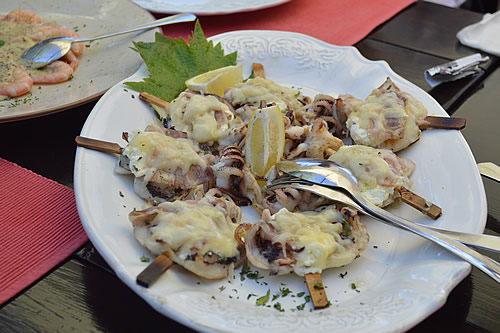 Well, yes, trust Alan! Konoba Pece of course is not a cafe, but one of best seafood restaurants in the area!! So it was that we sat down to a veritable gastronomic feast, a late lunch for them and an early dinner for us!