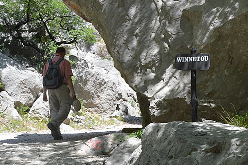 The signs by the trail read “Winnetou“, which was very mysterious as it didn’t sound particularly Croatian. Well, indeed not. Subsequent research tells me that he was the Apache hero of a number of 19th century novels written by German author Karl May. And in the 1960s and 70s, Paklenica was where they filmed 8 episodes of the immensely popular German/French western serial based on the books. Interesting! And I see that there’s a Pansion Winnetou at Plitvice National Park! I guess they filmed some episodes there too.