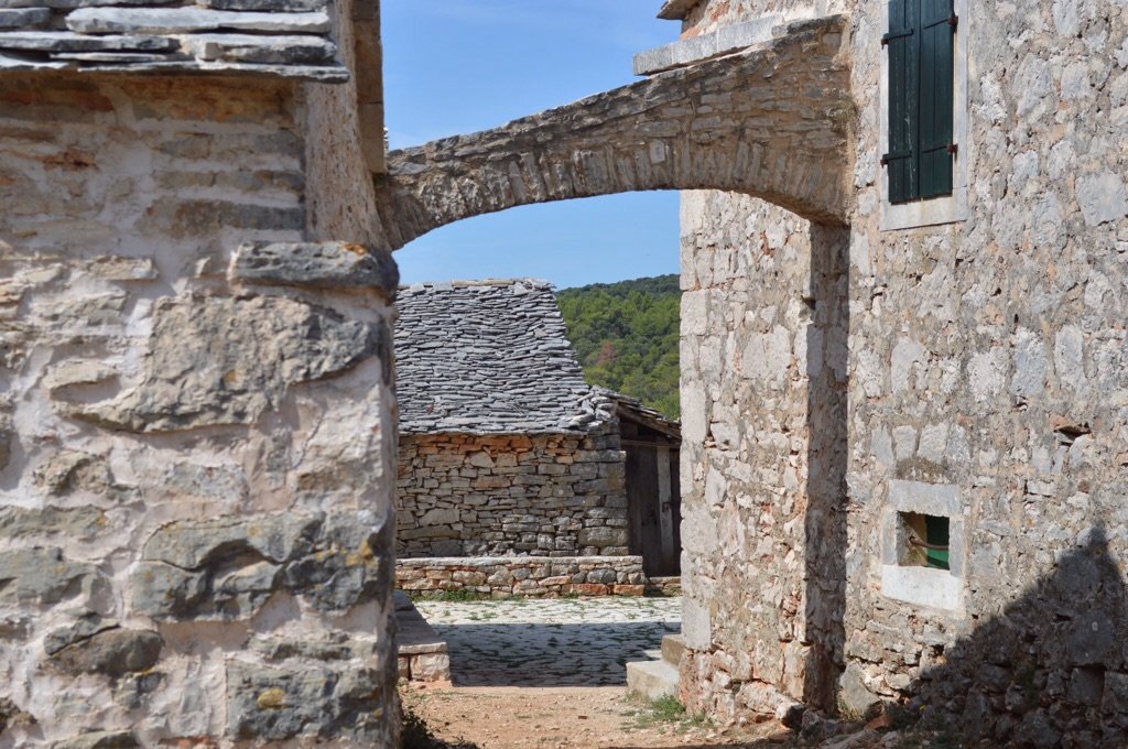For our third day of painting, we took the road up to the seasonal village of Humac. It’s a very pretty drive, with sweeping views over the Brač channel and much easier to navigate the road after the recent improvements. Humac itself is a farming village, the houses built by the folks of Vrisnik and only used when working the fields or grazing the sheep in summer. In its present form, it dates back to the 17th century.