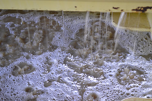 This first juice is produced just under its own weight, no squeezing involved. There’s choices to be made by the winemaker, as to how long the skins and pips should be left in the juice to add flavour to the final wine. The must is carefully tested and tasted to check the quality, and pumped into a stainless steel tank. As I followed the pipe in the door of the winery and across the floor to the tank, I heard a low-level bubbling coming from the next tank along. This turned out to contain red grape juice already halfway through the fermenting stage.
