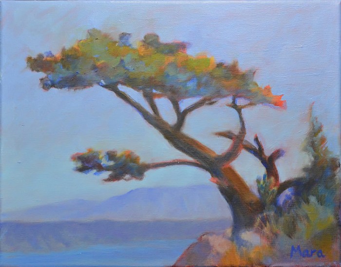 I wrote last year about the Dalmatian Black Pine, and the efforts to save this endangered species on the island of Hvar. In honour of Earth Day 2017 (22 April), here is my painting of a Dalmation Black PIne on Sv Nikola, the highest peak of the island. In the background is Mt Biokovo on the mainland, and the tail end of Brač. Oil on canvas.