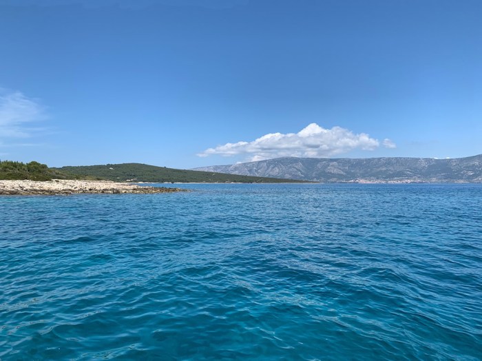 As we headed further round the coast, we enjoyed glorious views of Bol on the neighbouring island of Brač. A few coves along, we dropped anchor and enjoyed our boat picnic. The water was just a tad fresh for lazy swimming, so after a quick dip we decided to wash the winter dust off the boat. Memo to self: remember to close the windows next time I start sloshing buckets of water everywhere!